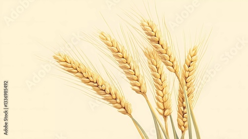 Mature wheat spikelet with natural golden tones, illustrating grain production, organic farming, and nature’s bounty, perfect for editorial visuals, stylized comic book illustration
