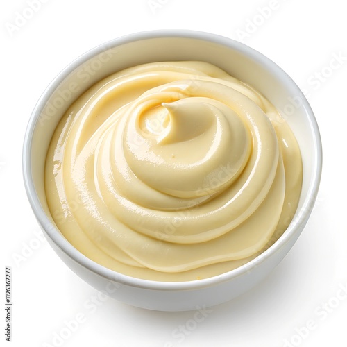 mayonnaise in a white bowl sliced toast bread isolated on white background