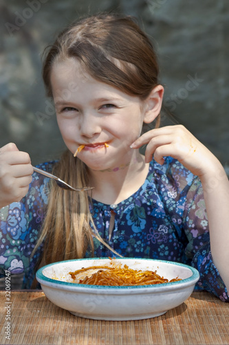 Mädchen isst Spaghetti