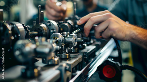 mechanical engineer is focused on calibrating intricate machinery, showcasing precision and expertise in workshop environment. attention to detail reflects commitment to quality and innovation