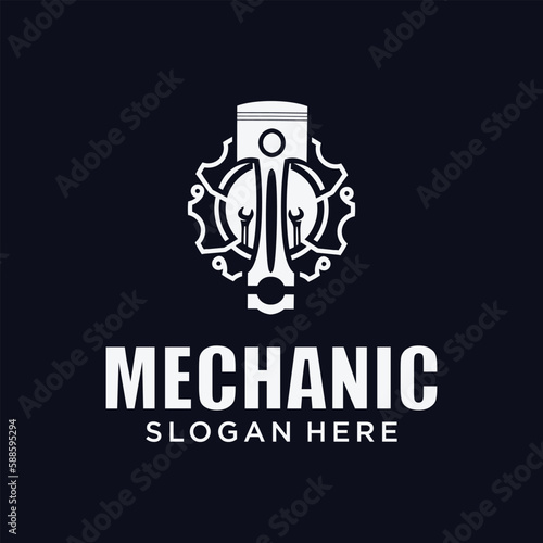 Mechanical technology logo, gear and piston combination logo symbol. engine parts