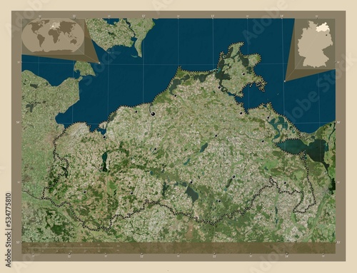 Mecklenburg-Vorpommern, Germany. High-res satellite. Major cities