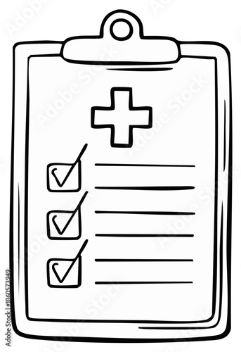 Medical checklist clipboard with health cross and successfully completed tasks