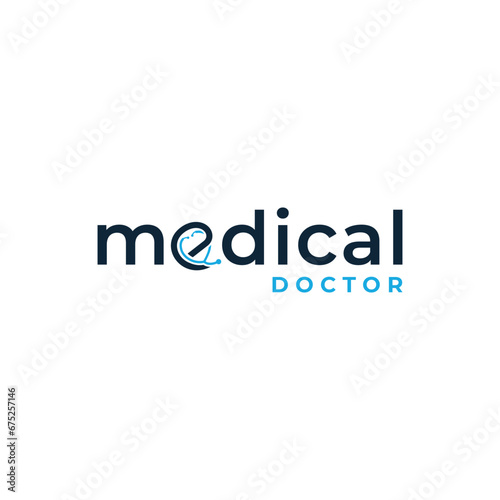 Medical doctor text logo design wordmark with stethoscope creative logo sign