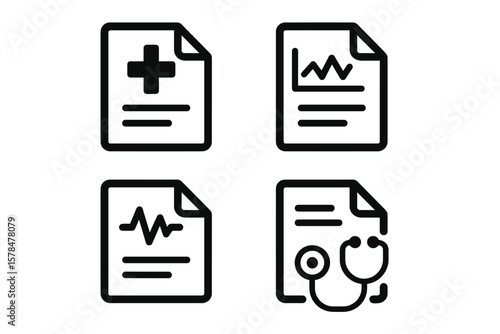 Medical document icons: health records and stethoscope symbol illustrations