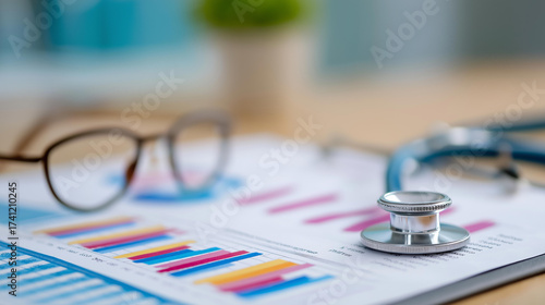 Medical report with health data charts, medical breakthrough in healthcare analytics, biotech advancement in statistical tools, healthcare innovation in data management, scientific