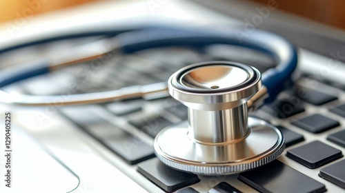 Medical Stethoscope on a Laptop Keyboard