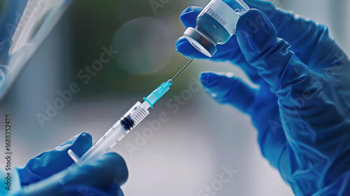 Medical Syringe and Vaccine Vial Close-Up Healthcare Professional Preparing Injection