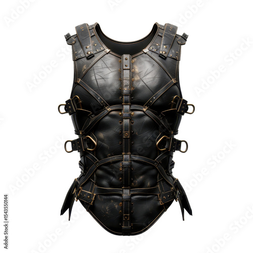 Medieval armor black leather protective gear historical costume warrior attire battle equipment detailed craftsmanship adjustable straps vintage