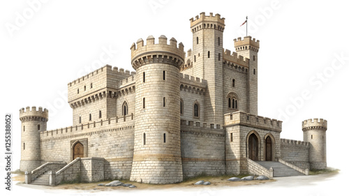 medieval castle tower isolated on white background