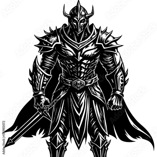 Medieval Knight in Shining Armor: An imposing medieval knight, armored and ready for battle, embodies strength, valor, and the mystique of a bygone era, a true icon of historical fantasy and valor.