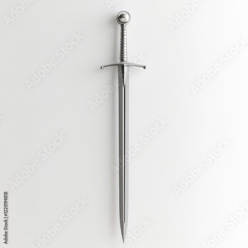 Medieval straight sword, silver, isolated on white background.