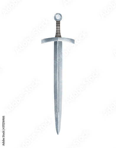 Medieval sword. Hand painted illustration.