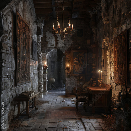 Medieval Tower Room Experience: Tapestries on Walls with Antique Writing Desk