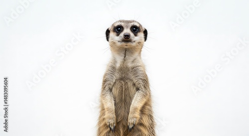 Meerkat Standing Alert on White Background Animal Portrait