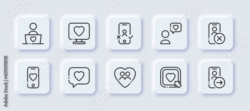 Meet. Neomorphism, black, ways to meet. Vector icons.
