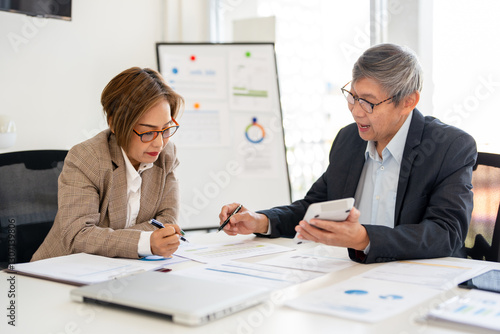 Meeting a team of businessmen, Executives and accountants meeting about the company's revenue graph in the office with laptops and calculator, Finance concept.