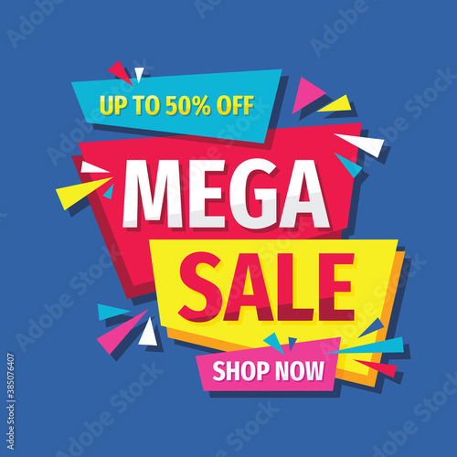 Mega sale discount vector layout concept illustration. Abstract advertising promotion banner. Creative background. Special offer. Shop now. Graphic design elements.