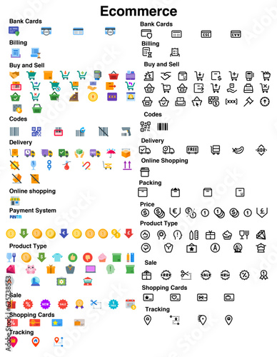 Mega set of icons in trendy line style. Business, e-commerc, finance, accounting. Big set Icons collection. Vector illustration.Modern UI Kit - Shopping and e-commerce icons set. Set of shopping bags.