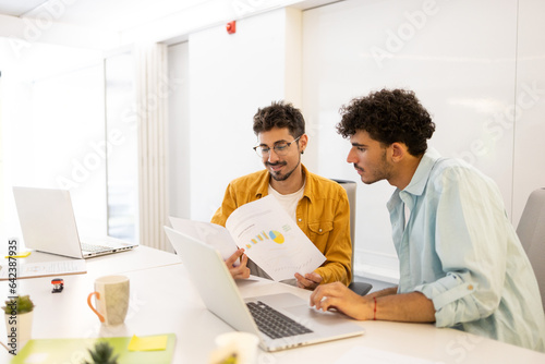Men colleagues working in modern office together