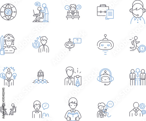 Mentorship outline icons collection. Mentoring, Tutelage, Guiding, Coaching, Advice, Tutoring, Support vector and illustration concept set. Sustenance, Monitoring, Nurture linear signs