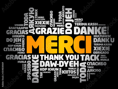 Merci (Thank You in French) word cloud in different languages