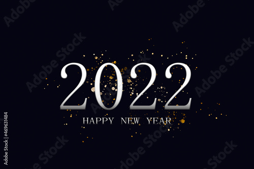 Merry Christmas and happy new year 2022 concept. silver color gradient text and number on black background. new modern luxury design card for celebration party in holidays.