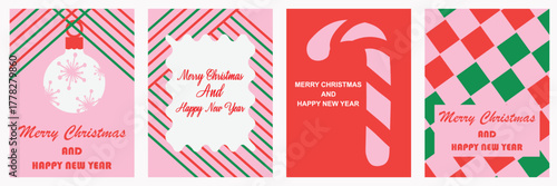Merry Christmas and Happy New Year greeting card with Modern typography. Minimal banner, poster, background, cover template. vector illustration. EPS 10