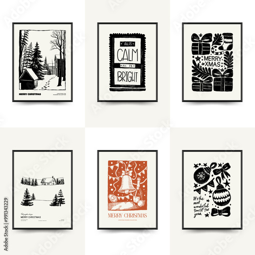Merry Christmas and Happy New Year vertical flyer or poster template. Modern trendy Matisse minimal style. Hand drawn design for wallpaper, wall decor, print, postcard, cover, template, banner.