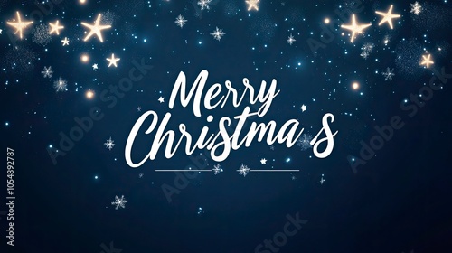 "Merry Christmas" in modern white font on a dark blue background, highlighted by stars, leaving ample room for a holiday note.