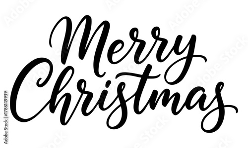 Merry Christmas lettering design. Seasonal greeting card template. A calligraphic hand written inscription
