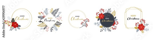 Merry Christmas logos, hand drawn elegant, delicate monograms isolated on white background. Hand drawn vector collection