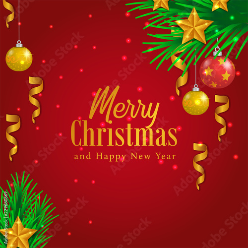Merry Christmas template for social media with illustration of bauble and swirl ribbon
