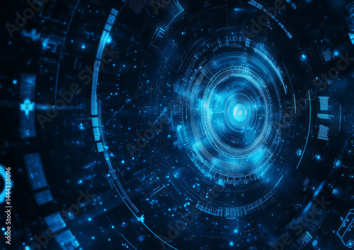 mesmerizing abstract blue background featuring futuristic circular design with glowing elements and intricate patterns, evoking sense of technology and innovation