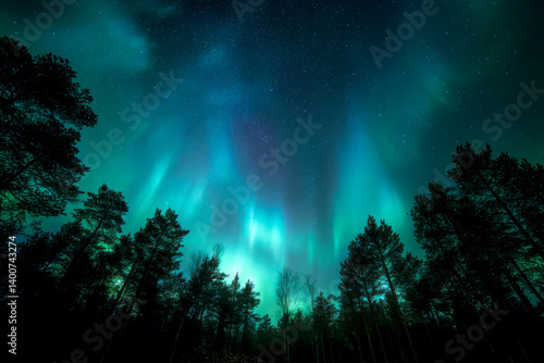 Mesmerizing Aurora Lights Over Swedish Forest at Night