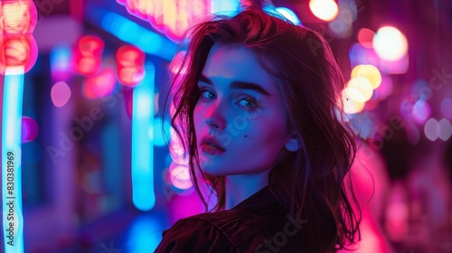 Mesmerizing Gaze: A Neon Nocturne Portrait