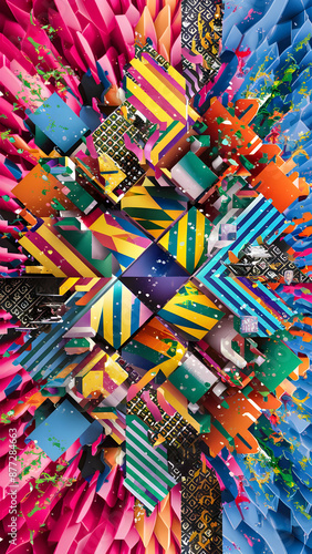 Mesmerizing Memphis 3D Rendered Geometric Artwork