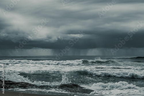 Mesmerizing view of the splashing waves of the ocean with dark clouds in the sky