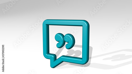 MESSAGES BUBBLE SQUARE QUOTATION stand with shadow. 3D illustration of metallic sculpture over a white background with mild texture. concept and communication