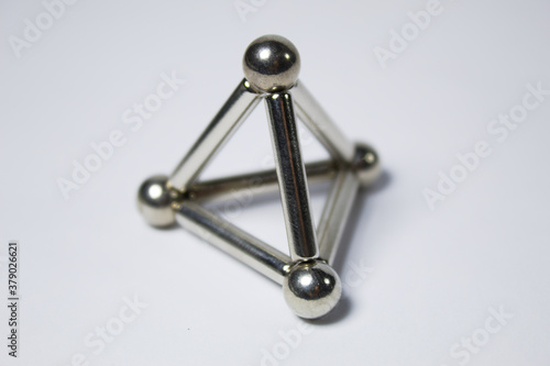 Metal frame with silvery spheres