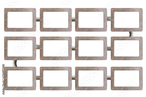 Metal signboard template with copy space diagram scheme empty flow chart isolated on white background.