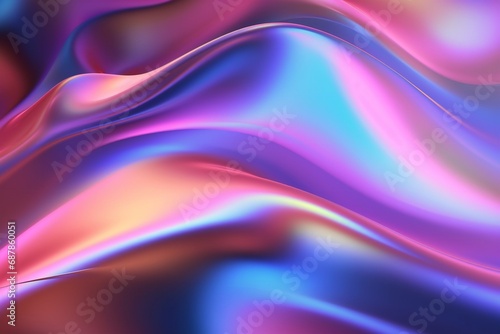 Metallic abstract wavy liquid background. Iridescent chrome wavy gradient. cloth fabric abstract