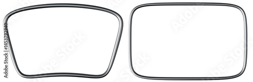 Metallic chrome rectangular frames are arranged side by side, featuring a sleek, 3D rendered design. The empty area in the middle invites creativity, offering a minimalist aesthetic