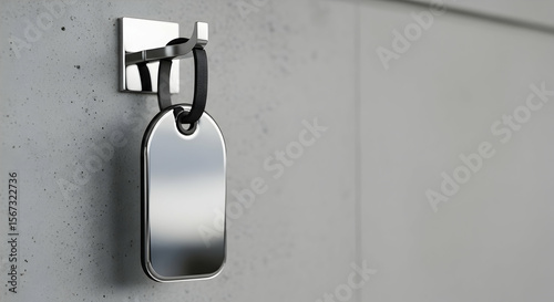 Metallic Dog Tag Hanging On Modern Wall Hook For Mockup Design Concept