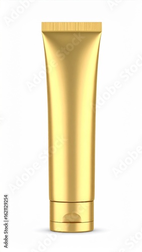 Metallic Gold Cosmetic Tube on White Background for Cream Mockup Design