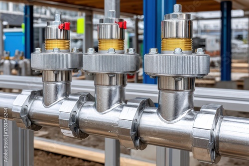 Metallic industrial valves and piping showing robust, precise engineering.