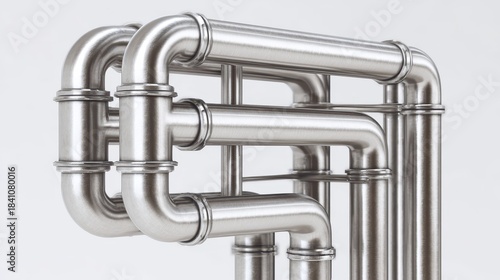 Metallic Pipe System Arrangement on White Background Illustrating Plumbing and Engineering Concepts