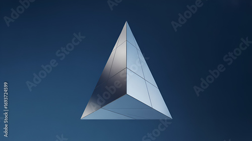 Metallic pyramid with a textured surface against a gradient blue background