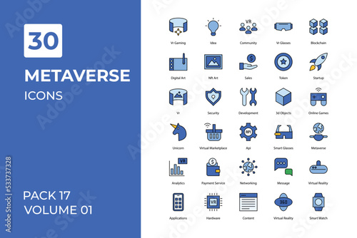 Metaverse icons collection. Set vector line with elements for mobile concepts and web apps. Collection modern icons.