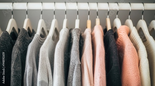 Meticulously Arranged Minimalist Clothing Rack in Soft Monochrome Tones